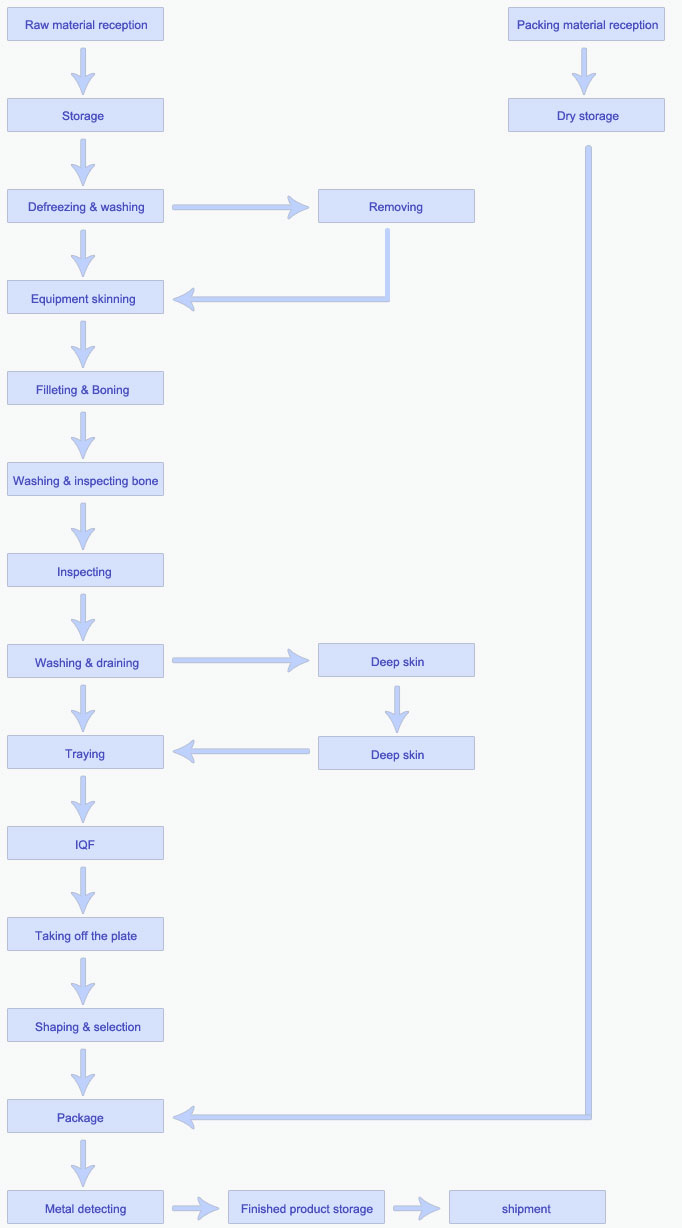 We adopt many technological advancements for use, such as Tunnel Conveyor Freezer, Plate Freezer, automatic sealing machines, and skin removing machines.